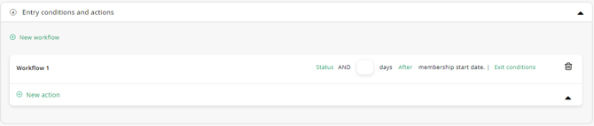 Then click “after” and choose whether you want to activate the workflow “on” or “after” the membership start date. If you choose “after,” you will also need to enter the amount of days after.