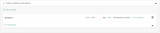 Then click “after” and choose whether you want to activate the workflow “before,” “on,” or “after” the membership end date. If you choose “before” or “after,” you will also need to enter the amount of days.